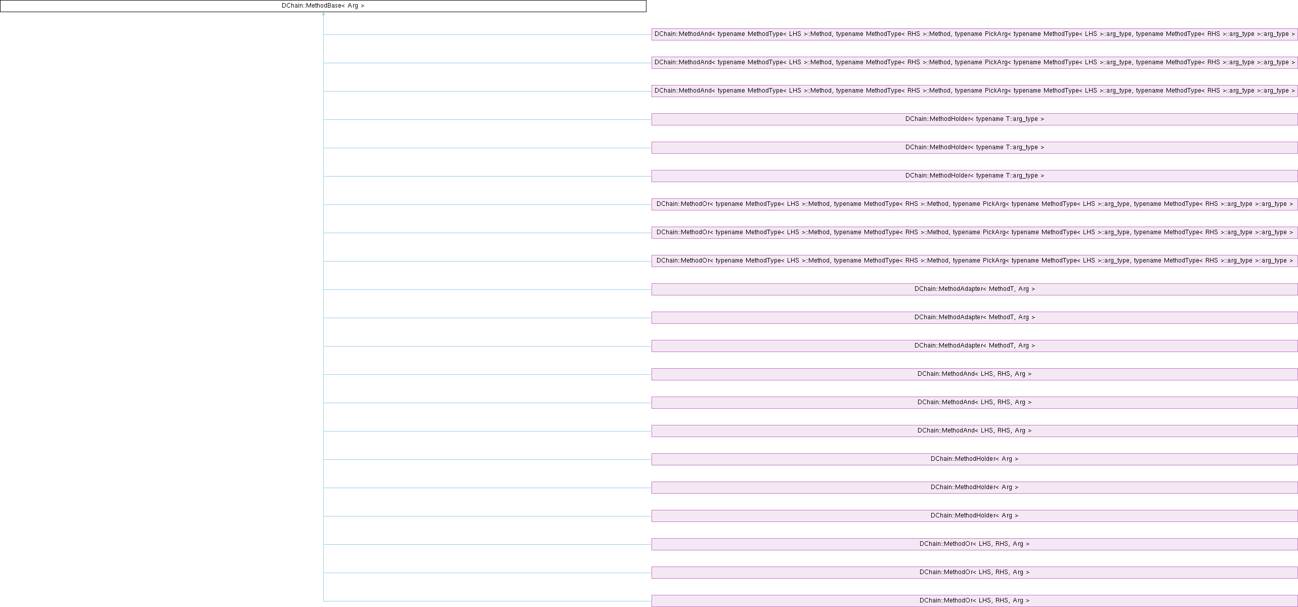 Implemented in DChain::MethodAdapter< MethodT, Arg >, DChain::MethodAdapter< MethodT, Arg >, DChain::MethodAdapter< MethodT, Arg >, DChain::MethodAnd< LHS, RHS, Arg >, DChain::MethodAnd< LHS, RHS, Arg >, DChain::MethodAnd< LHS, RHS, Arg >, DChain::MethodHolder< Arg >, DChain::MethodHolder< Arg >, DChain::MethodHolder< Arg >, DChain::MethodOr< LHS, RHS, Arg >, DChain::MethodOr< LHS, RHS, Arg >, and DChain::MethodOr< LHS, RHS, Arg >.
