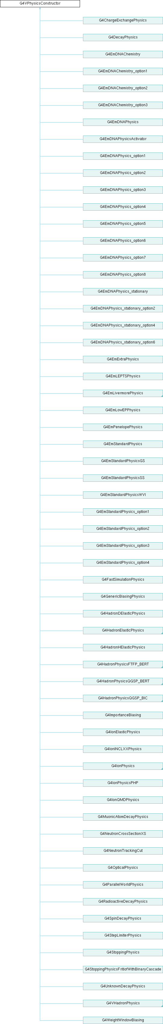 Inheritance diagram for G4VPhysicsConstructor:Public Member Functions | |