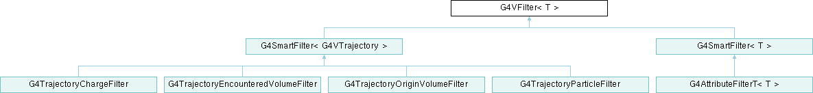 Inheritance diagram for G4VFilter< T >:Public Types | |
