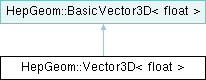 Inheritance diagram for HepGeom::Vector3D< float >:Public Member Functions | |