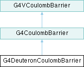 Inheritance diagram for G4DeuteronCoulombBarrier:Public Member Functions | |