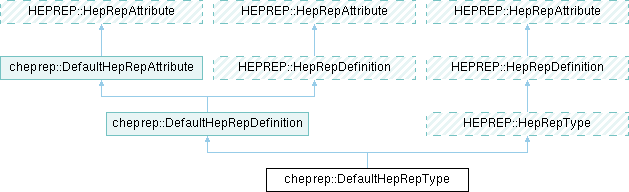 Inheritance diagram for cheprep::DefaultHepRepType:Public Member Functions | |