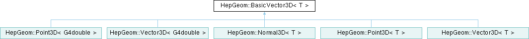 Inheritance diagram for HepGeom::BasicVector3D< T >:Public Types | |