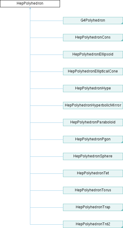 Inheritance diagram for HepPolyhedron:Static Public Member Functions | |