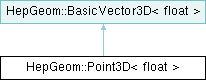 Inheritance diagram for HepGeom::Point3D< float >:Public Member Functions | |
