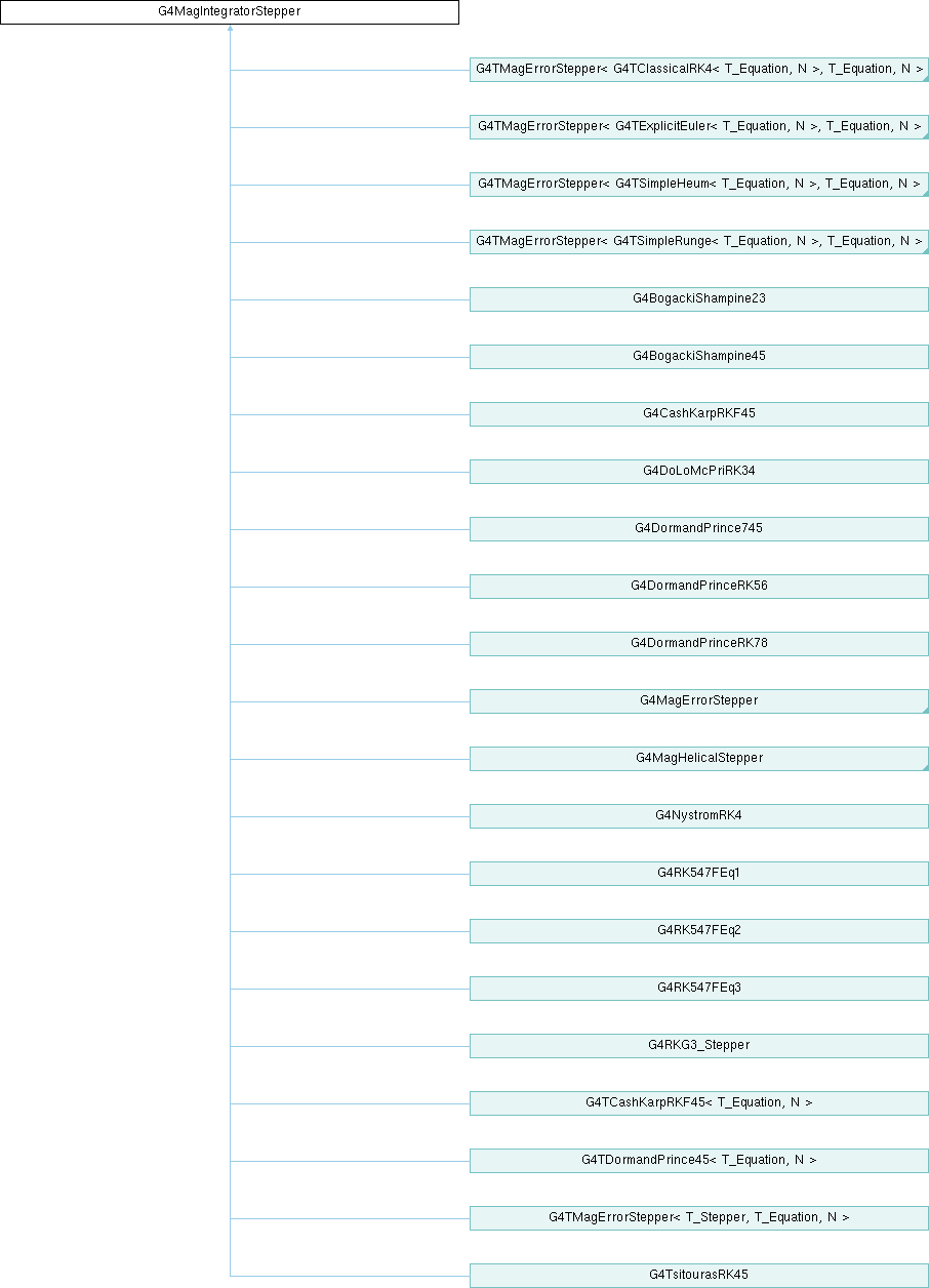 Implemented in G4BogackiShampine45, G4CashKarpRKF45, G4ConstRK4, G4DoLoMcPriRK34, G4DormandPrinceRK56, G4DormandPrinceRK78, G4ExactHelixStepper, G4HelixExplicitEuler, G4HelixMixedStepper, G4MagErrorStepper, G4MagHelicalStepper, G4RKG3_Stepper, G4TsitourasRK45, G4BogackiShampine23, G4DormandPrince745, G4NystromRK4, G4RK547FEq1, G4RK547FEq2, G4RK547FEq3, G4TCashKarpRKF45< T_Equation, N >, G4TDormandPrince45< T_Equation, N >, G4TMagErrorStepper< T_Stepper, T_Equation, N >, G4TMagErrorStepper< G4TClassicalRK4< T_Equation, N >, T_Equation, N >, G4TMagErrorStepper< G4TExplicitEuler< T_Equation, N >, T_Equation, N >, G4TMagErrorStepper< G4TSimpleHeum< T_Equation, N >, T_Equation, N >, and G4TMagErrorStepper< G4TSimpleRunge< T_Equation, N >, T_Equation, N >.