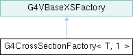 Inheritance diagram for G4CrossSectionFactory< T, 1 >:Public Member Functions | |