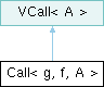 Inheritance diagram for Call< g, f, A >:Public Member Functions | |