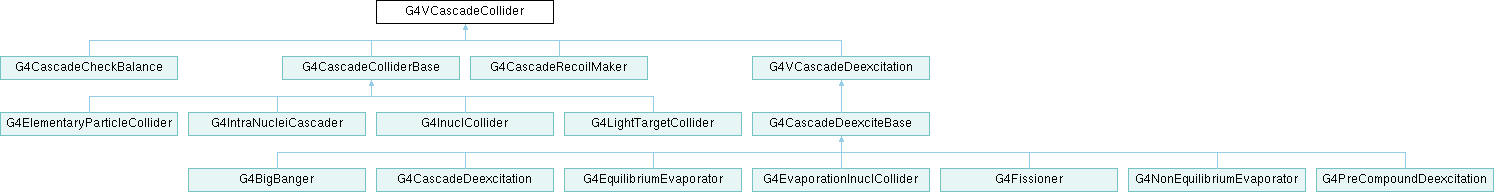 Inheritance diagram for G4VCascadeCollider:Public Member Functions | |