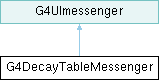 Inheritance diagram for G4DecayTableMessenger:Public Member Functions | |