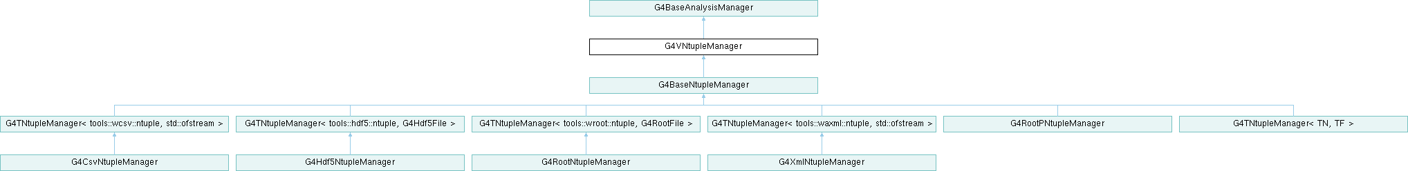 Inheritance diagram for G4VNtupleManager:Public Member Functions | |