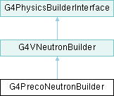 Inheritance diagram for G4PrecoNeutronBuilder:Public Member Functions | |