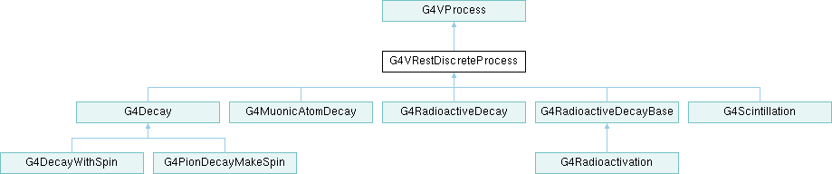 Inheritance diagram for G4VRestDiscreteProcess:Protected Member Functions | |