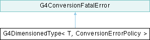 Inheritance diagram for G4DimensionedType< T, ConversionErrorPolicy >:Public Member Functions | |
