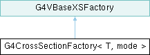 Inheritance diagram for G4CrossSectionFactory< T, mode >:Public Member Functions | |