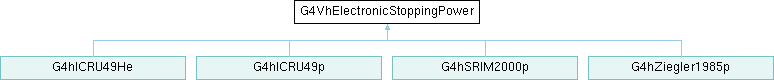 Inheritance diagram for G4VhElectronicStoppingPower:Public Member Functions | |