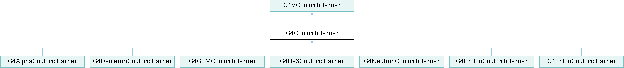 Inheritance diagram for G4CoulombBarrier:Public Member Functions | |