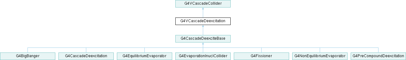 Inheritance diagram for G4VCascadeDeexcitation:Public Member Functions | |