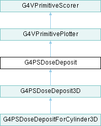 Inheritance diagram for G4PSDoseDeposit:Protected Member Functions | |