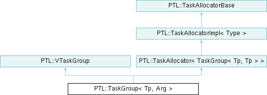 Inheritance diagram for PTL::TaskGroup< Tp, Arg >:Public Types | |