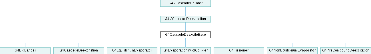 Inheritance diagram for G4CascadeDeexciteBase:Public Member Functions | |