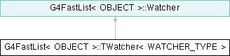 Inheritance diagram for G4FastList< OBJECT >::TWatcher< WATCHER_TYPE >:Public Member Functions | |
