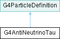 Inheritance diagram for G4AntiNeutrinoTau:Static Public Member Functions | |