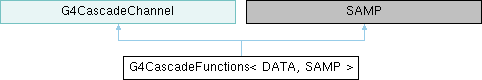 Inheritance diagram for G4CascadeFunctions< DATA, SAMP >:Public Member Functions | |
