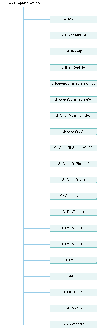 Implemented in G4RayTracer, G4DAWNFILE, G4GMocrenFile, G4HepRep, G4HepRepFile, G4OpenGLImmediateQt, G4OpenGLImmediateWin32, G4OpenGLImmediateWt, G4OpenGLImmediateX, G4OpenGLImmediateXm, G4OpenGLStoredQt, G4OpenGLStoredWin32, G4OpenGLStoredX, G4OpenGLStoredXm, G4OpenInventorWin, G4OpenInventorXt, G4OpenInventorXtExtended, G4ASCIITree, G4VRML1File, G4VRML2File, G4XXX, G4XXXFile, G4XXXSG, and G4XXXStored.