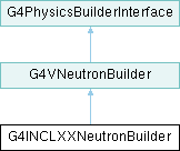 Inheritance diagram for G4INCLXXNeutronBuilder:Builder for neutron processes using the INCL++ intra-nuclear cascade model.