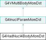 Inheritance diagram for G4HadNucl4BodyMomDst:Public Member Functions | |