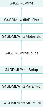 Inheritance diagram for G4GDMLWriteSolids:Public Member Functions | |