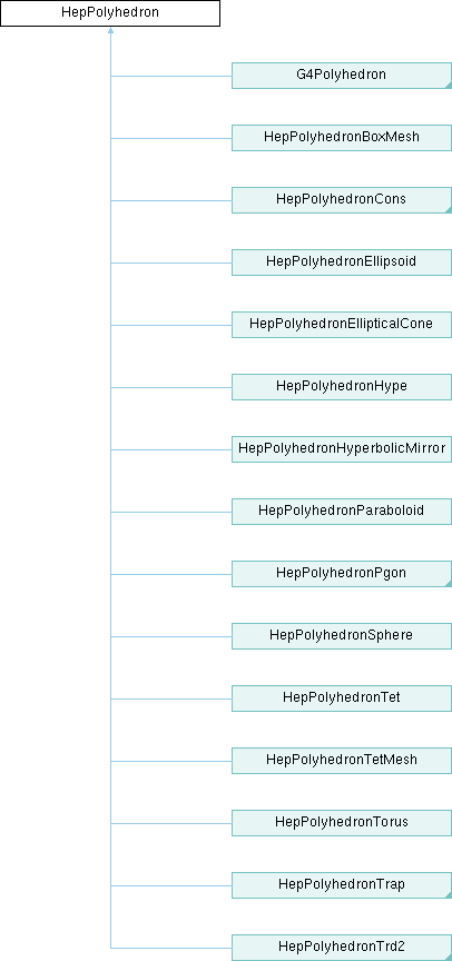 Inheritance diagram for HepPolyhedron:Static Public Member Functions | |