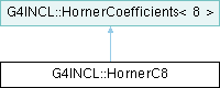 Inheritance diagram for G4INCL::HornerC8:Public Member Functions | |