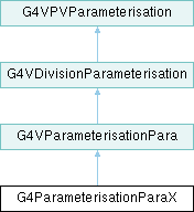 Inheritance diagram for G4ParameterisationParaX:Additional Inherited Members | |