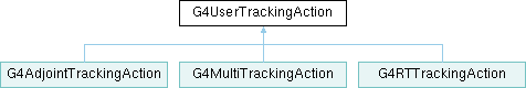 Inheritance diagram for G4UserTrackingAction:Public Member Functions | |