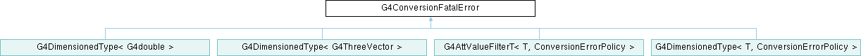 Inheritance diagram for G4ConversionFatalError:Public Member Functions | |