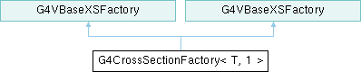 Inheritance diagram for G4CrossSectionFactory< T, 1 >:Public Member Functions | |