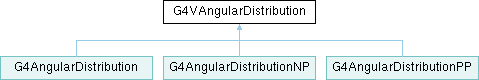 Inheritance diagram for G4VAngularDistribution:Public Member Functions | |