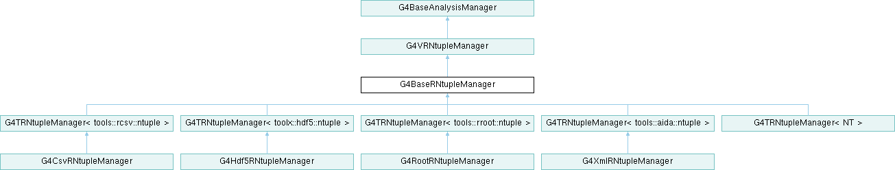 Inheritance diagram for G4BaseRNtupleManager:Public Member Functions | |