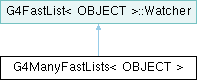 Inheritance diagram for G4ManyFastLists< OBJECT >:Public Types | |