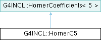 Inheritance diagram for G4INCL::HornerC5:Public Member Functions | |