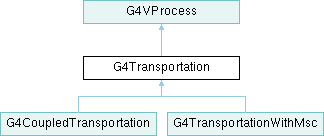 Inheritance diagram for G4Transportation:Static Public Member Functions | |