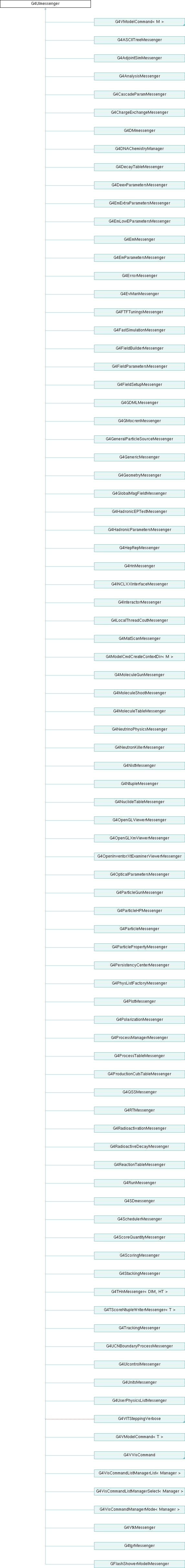 Reimplemented in G4AdjointSimMessenger, G4AnalysisMessenger, G4ASCIITreeMessenger, G4CascadeParamMessenger, G4ChargeExchangeMessenger, G4DecayTableMessenger, G4DeexParametersMessenger, G4DMmessenger, G4DNAChemistryManager, G4EmExtraParametersMessenger, G4EmLowEParametersMessenger, G4EmMessenger, G4EmParametersMessenger, G4ErrorMessenger, G4EvManMessenger, G4FastSimulationMessenger, G4FieldBuilderMessenger, G4FieldParametersMessenger, G4FieldSetupMessenger, G4FTFTuningsMessenger, G4GDMLMessenger, G4GeneralParticleSourceMessenger, G4GenericMessenger, G4GeometryMessenger, G4GlobalMagFieldMessenger, G4GMocrenMessenger, G4HadronicEPTestMessenger, G4HadronicParametersMessenger, G4HepRepMessenger, G4HnMessenger, G4INCLXXInterfaceMessenger, G4InteractorMessenger, G4LocalThreadCoutMessenger, G4MatScanMessenger, G4ModelCmdApplyBool< M >, G4ModelCmdApplyColour< M >, G4ModelCmdApplyDouble< M >, G4ModelCmdApplyDoubleAndUnit< M >, G4ModelCmdApplyInteger< M >, G4ModelCmdApplyNull< M >, G4ModelCmdApplyString< M >, G4ModelCmdApplyStringColour< M >, G4MoleculeGunMessenger, G4MoleculeShootMessenger, G4MoleculeTableMessenger, G4NeutrinoPhysicsMessenger, G4NeutronKillerMessenger, G4NistMessenger, G4NtupleMessenger, G4NuclideTableMessenger, G4OpenGLViewerMessenger, G4OpenGLXmViewerMessenger, G4OpenInventorXtExaminerViewerMessenger, G4OpticalParametersMessenger, G4ParticleGunMessenger, G4ParticleHPMessenger, G4ParticleMessenger, G4ParticlePropertyMessenger, G4PersistencyCenterMessenger, G4PhysListFactoryMessenger, G4PlotMessenger, G4PolarizationMessenger, G4ProcessManagerMessenger, G4ProcessTableMessenger, G4ProductionCutsTableMessenger, G4QSSMessenger, G4RadioactivationMessenger, G4RadioactiveDecayMessenger, G4ReactionTableMessenger, G4RTMessenger, G4RunMessenger, G4SchedulerMessenger, G4ScoreQuantityMessenger, G4ScoringMessenger, G4SDmessenger, G4StackingMessenger, G4tgrMessenger, G4THnMessenger< DIM, HT >, G4ToolsSGOffscreenViewer::Messenger, G4ToolsSGSceneHandler::Messenger, G4ToolsSGViewer< SG_SESSION, SG_VIEWER >::Messenger, G4TrackingMessenger, G4TScoreNtupleWriterMessenger< T >, G4UCNBoundaryProcessMessenger, G4UIcontrolMessenger, G4UnitsMessenger, G4UserPhysicsListMessenger, G4VisCommandAbortReviewKeptEvents, G4VisCommandAbortReviewPlots, G4VisCommandDrawLogicalVolume, G4VisCommandDrawOnlyToBeKeptEvents, G4VisCommandDrawTree, G4VisCommandDrawView, G4VisCommandDrawVolume, G4VisCommandEnable, G4VisCommandGeometryList, G4VisCommandGeometryRestore, G4VisCommandGeometrySetColour, G4VisCommandGeometrySetDaughtersInvisible, G4VisCommandGeometrySetForceAuxEdgeVisible, G4VisCommandGeometrySetForceCloud, G4VisCommandGeometrySetForceLineSegmentsPerCircle, G4VisCommandGeometrySetForceSolid, G4VisCommandGeometrySetForceWireframe, G4VisCommandGeometrySetLineStyle, G4VisCommandGeometrySetLineWidth, G4VisCommandGeometrySetVisibility, G4VisCommandInitialize, G4VisCommandList, G4VisCommandListManagerList< Manager >, G4VisCommandListManagerSelect< Manager >, G4VisCommandManagerMode< Manager >, G4VisCommandModelCreate< Factory >, G4VisCommandMultithreadingActionOnEventQueueFull, G4VisCommandMultithreadingMaxEventQueueSize, G4VisCommandOpen, G4VisCommandPlot, G4VisCommandReviewKeptEvents, G4VisCommandReviewPlots, G4VisCommandSceneActivateModel, G4VisCommandSceneAddArrow2D, G4VisCommandSceneAddArrow, G4VisCommandSceneAddAxes, G4VisCommandSceneAddDate, G4VisCommandSceneAddDigis, G4VisCommandSceneAddElectricField, G4VisCommandSceneAddEventID, G4VisCommandSceneAddExtent, G4VisCommandSceneAddFrame, G4VisCommandSceneAddGhosts, G4VisCommandSceneAddGPS, G4VisCommandSceneAddHits, G4VisCommandSceneAddLine2D, G4VisCommandSceneAddLine, G4VisCommandSceneAddLocalAxes, G4VisCommandSceneAddLogicalVolume, G4VisCommandSceneAddLogo2D, G4VisCommandSceneAddLogo, G4VisCommandSceneAddMagneticField, G4VisCommandSceneAddPlotter, G4VisCommandSceneAddPSHits, G4VisCommandSceneAddScale, G4VisCommandSceneAddText2D, G4VisCommandSceneAddText, G4VisCommandSceneAddTrajectories, G4VisCommandSceneAddUserAction, G4VisCommandSceneAddVolume, G4VisCommandSceneCreate, G4VisCommandSceneEndOfEventAction, G4VisCommandSceneEndOfRunAction, G4VisCommandSceneHandlerAttach, G4VisCommandSceneHandlerCreate, G4VisCommandSceneHandlerList, G4VisCommandSceneHandlerSelect, G4VisCommandSceneList, G4VisCommandSceneNotifyHandlers, G4VisCommandSceneRemoveModel, G4VisCommandSceneSelect, G4VisCommandSceneShowExtents, G4VisCommandSetArrow3DLineSegmentsPerCircle, G4VisCommandSetColour, G4VisCommandSetExtentForField, G4VisCommandSetLineWidth, G4VisCommandSetTextColour, G4VisCommandSetTextLayout, G4VisCommandSetTextSize, G4VisCommandSetTouchable, G4VisCommandSetVolumeForField, G4VisCommandSpecify, G4VisCommandsTouchable, G4VisCommandsTouchableSet, G4VisCommandsViewerSet, G4VisCommandVerbose, G4VisCommandViewerAddCutawayPlane, G4VisCommandViewerCentreOn, G4VisCommandViewerChangeCutawayPlane, G4VisCommandViewerClear, G4VisCommandViewerClearCutawayPlanes, G4VisCommandViewerClearTransients, G4VisCommandViewerClearVisAttributesModifiers, G4VisCommandViewerClone, G4VisCommandViewerColourByDensity, G4VisCommandViewerCopyViewFrom, G4VisCommandViewerCreate, G4VisCommandViewerDefaultHiddenEdge, G4VisCommandViewerDefaultStyle, G4VisCommandViewerDolly, G4VisCommandViewerFlush, G4VisCommandViewerInterpolate, G4VisCommandViewerList, G4VisCommandViewerPan, G4VisCommandViewerRebuild, G4VisCommandViewerRefresh, G4VisCommandViewerReset, G4VisCommandViewerResetCameraParameters, G4VisCommandViewerSave, G4VisCommandViewerScale, G4VisCommandViewerSelect, G4VisCommandViewerUpdate, G4VisCommandViewerZoom, G4VITSteppingVerbose, G4VtkMessenger, and GFlashShowerModelMessenger.