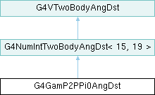 Inheritance diagram for G4GamP2PPi0AngDst:Public Member Functions | |