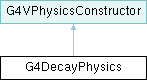 Inheritance diagram for G4DecayPhysics:Public Member Functions | |