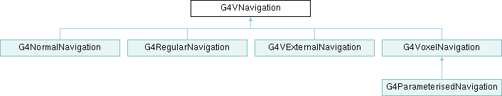 Inheritance diagram for G4VNavigation:Public Member Functions | |