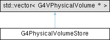Inheritance diagram for G4PhysicalVolumeStore:Public Member Functions | |