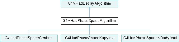 Inheritance diagram for G4VHadPhaseSpaceAlgorithm:Public Member Functions | |