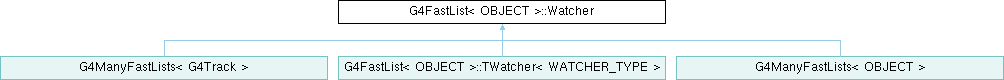 Inheritance diagram for G4FastList< OBJECT >::Watcher:Public Types | |